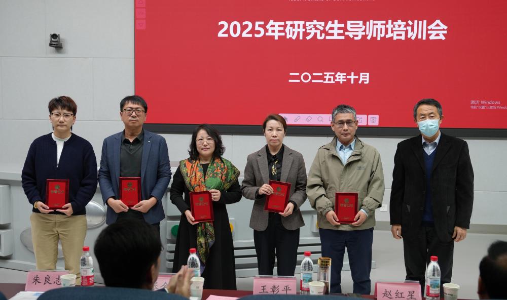 副校长李兴国宣读《关于聘任黄楚新等为研究生导师的决定》,新一批校内外优秀专家学者正式加入我校研究生导师队伍。党委书记赵红星为新聘任导师颁发聘书。